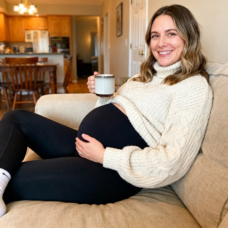 Die Livelia Leggings begleitet dich von der ersten Schwangerschaftswoche bis ins Wochenbett. Der Hochbund wächst mit deinem Bauch mit und passt sich in jeder Phase an, ganz ohne Drücken oder Einschneiden.